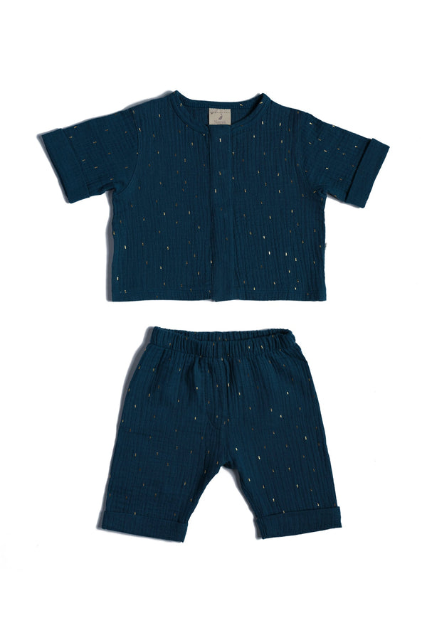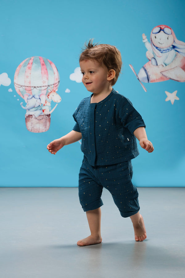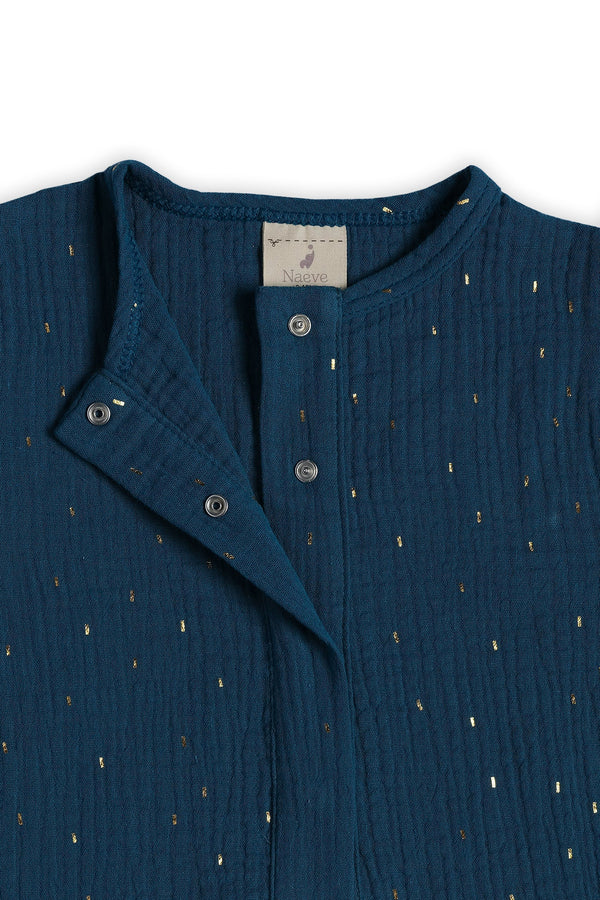 Costumaș de vară pentru copii din muselină de bumbac organic 100% cu capse și detalii auri