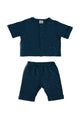 - Articol: Costumaș de vară pentru copii din muselină din bumbac 100% cu capse și detalii auri