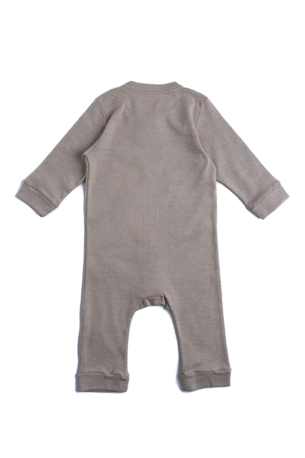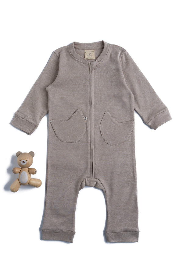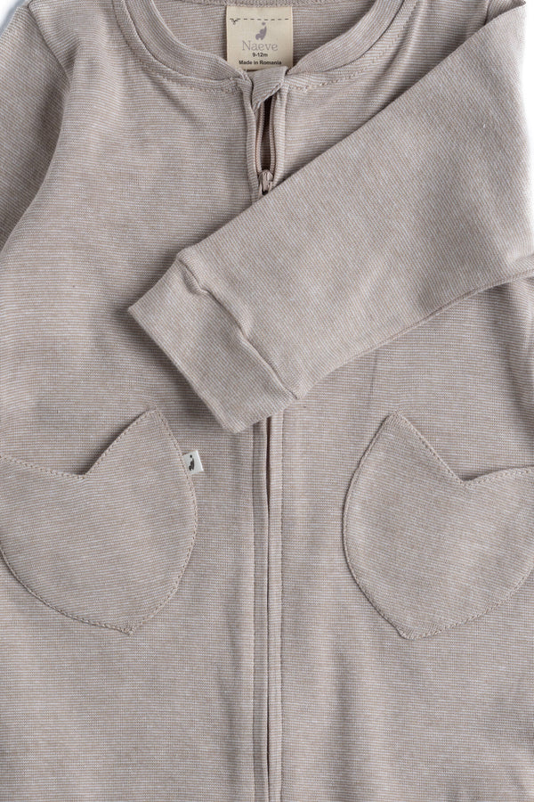 Salopetă bumbac organic, de interior, bej cu buzunare