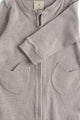 Salopeta de interior are o culoare bej deschis, este realizată din material organic, fermoar premium cu protecție și deschidere largă în partea din față.